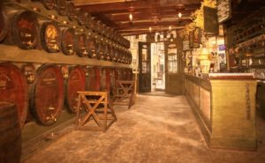 Déguster du genièvre dans le cadre boisé du De Drie Fleschjes à Amsterdam.