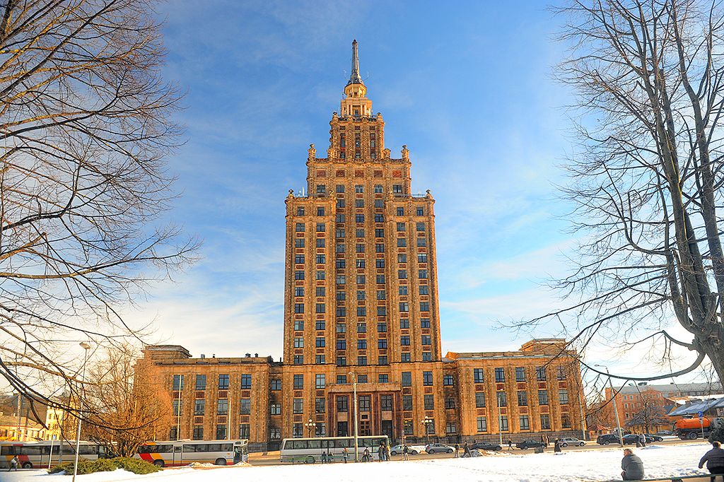 Gratte-ciel de Staline, le Palais de l’Académie des sciences lettones et cousin du Pkin à Varsovie est l’un des exemples de l’architecture stalinienne en Lettonie et à Riga.