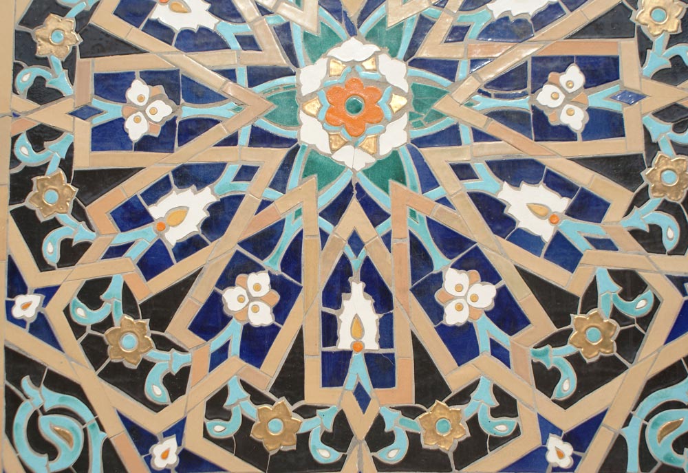 Elle compte 5 minarets et sa coupole culmine à 39 mètres de hauteur. Sa façade et son dôme recouverts de mosaïques bleues sont visibles de loin. L’intérieur de l’édifice est composé de colonnes en marbre tandis que le sol est recouvert de tapis précieux.