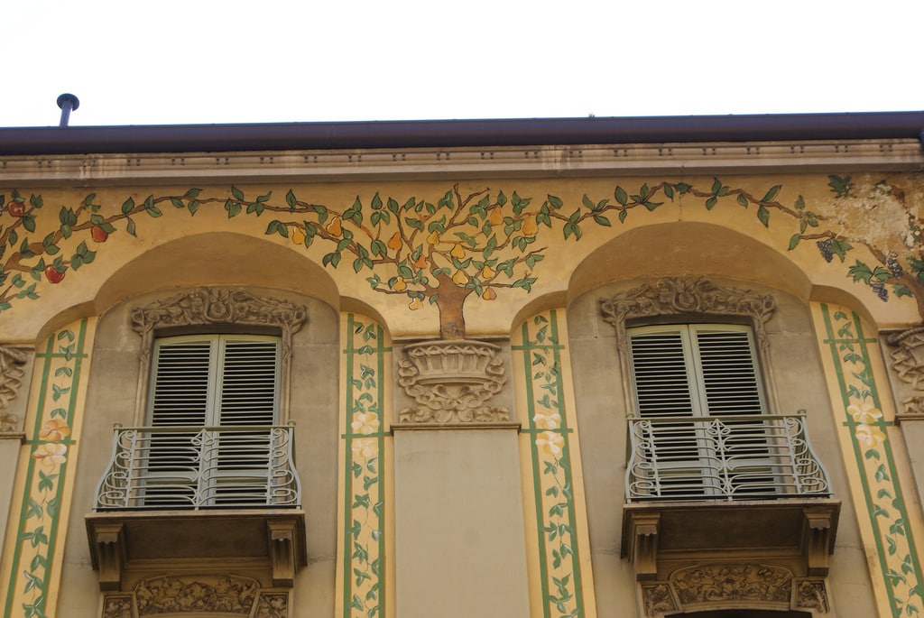 Quelques photos de façades, balcons et de fenêtres à Turin pour les fans d'architecture. > Fenêtres avec des motifs végétaux à Turin. > Fenêtres et balcons de style art nouveau à Turin. > Fenêtres fleuries à Turin. > Façade et balcon d'inspiration classique à Turin. > Batiment et façade de style fasciste à Turin. > Façade art nouveau dans une…